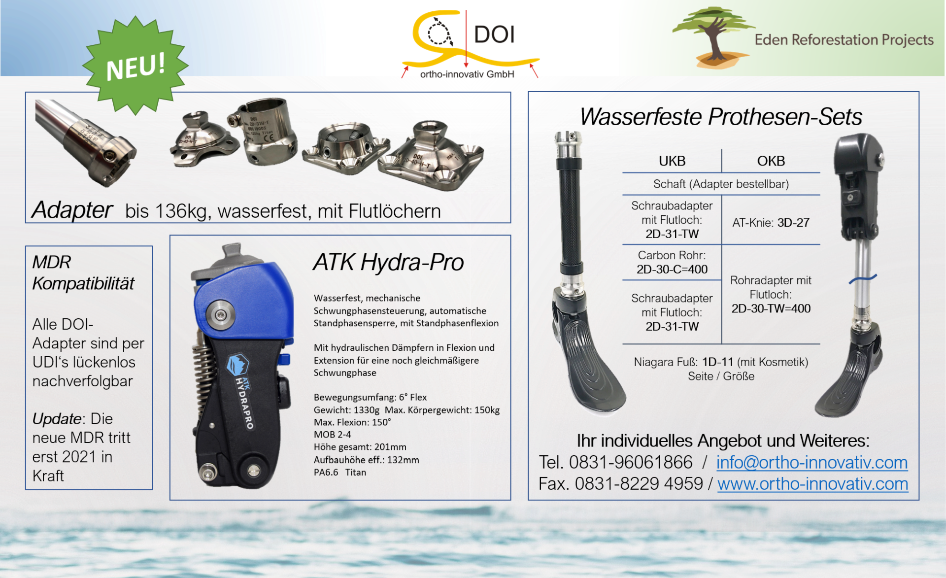 DOI ortho-innovativ GmbH steht nicht nur für die Verbesserung der Lebensqualität von Amputierten. Unser weltweites Engagement kann durch eine Partnerschaft mit Eden Reforestation Projects nun auch in der Natur und im Sozialen zum tragen kommen.